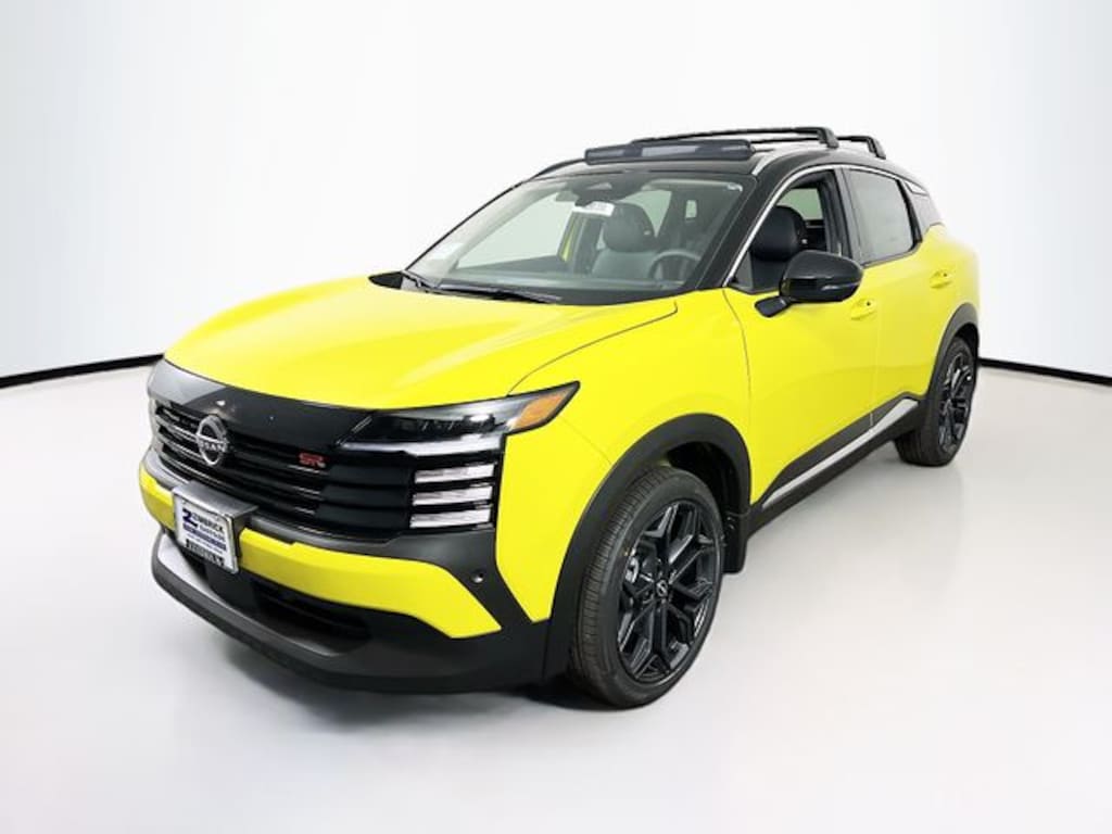 Yuzu Yellow Metallic/Super Black 2025 Nissan Kicks SR AWD CVT with Xtronic 2.0L DOHC Bose 10 -Speaker Audio, Driver Seat-Mounted Supplemental Air Bag, Heated Front Seats, Heated Steering Wheel, Panoramic Moonroof, Rain Sensing Wipers, Remote Engine Start, SR Premium Package, 17" Alloy Wheels, 2-Tone Premium Paint, 4-Wheel Disc Brakes, 6 Speakers, ABS brakes, Air Conditioning, Alloy wheels, AM/FM radio: Sirius, Auto High-beam Headlights, Automatic temperature control, Brake assist, Bumpers: body-color, Carpeted Floor Mats, Cloth/Leatherette Seat Trim, Crossbars, Delay-off headlights, Driver door bin, Driver vanity mirror, Dual front impact airbags, Dual front side impact airbags, Electronic Stability Control, Four wheel independent suspension, Front anti-roll bar, Front Bucket Seats, Front Center Armrest, Front reading lights, Fully automatic headlights, Heated door mirrors, Illuminated entry, Knee airbag, Leather Shift Knob, Leather steering wheel, Low tire pressure warning, Occupant sensing airbag, Outside temperature display, Overhead airbag, Overhead console, Panic alarm, Passenger door bin, Passenger vanity mirror, Power door mirrors, Power steering, Power windows, Radio data system, Radio: AM/FM Audio System, Rear anti-roll bar, Rear reading lights, Rear seat center armrest, Rear side impact airbag, Rear window defroster, Rear window wiper, Remote keyless entry, Security system, Speed control, Speed-sensing steering, Splash Guards, Split folding rear seat, Spoiler, Sport steering wheel, Steering wheel mounted audio controls, Tachometer, Telescoping steering wheel, Tilt steering wheel, Traction control, Trip computer, Turn signal indicator mirrors, Variably intermittent wipers, Wheels: 19" Alloy (W10), Wireless Apple CarPlay/Wireless Android Auto, Bose 10 -Speaker Audio, Driver Seat-Mounted Supplemental Air Bag, Heated Front Seats, Heated Steering Wheel, Panoramic Moonroof, Rain Sensing Wipers, Remote Engine Start, SR Premium Package.