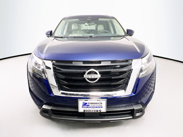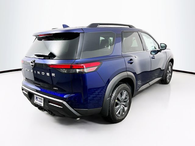 Deep Ocean Blue Pearl 2025 Nissan Pathfinder SV 4WD 9-Speed Automatic 3.5L V6 DOHC 2nd-Row Captain Chairs, 2nd-Row Rear Headrest, Panoramic Moonroof, SV Premium Package, 3rd row seats: bench, 4-Wheel Disc Brakes, 6 Speakers, ABS brakes, Air Conditioning, Alloy wheels, AM/FM radio: SiriusXM, Auto High-beam Headlights, Automatic temperature control, Brake assist, Bumpers: body-color, Cloth Seating Surfaces, Cross Bars, Delay-off headlights, Driver door bin, Driver vanity mirror, Dual front impact airbags, Dual front side impact airbags, Electronic Stability Control, Emergency communication system, Four wheel independent suspension, Front anti-roll bar, Front Bucket Seats, Front Center Armrest, Front dual zone A/C, Front reading lights, Fully automatic headlights, Heated door mirrors, Heated Front Bucket Seats, Heated front seats, Illuminated entry, Knee airbag, Leather steering wheel, Low tire pressure warning, NissanConnect featuring Apple CarPlay and Android Auto, Occupant sensing airbag, Outside temperature display, Overhead airbag, Overhead console, Panic alarm, Passenger door bin, Passenger vanity mirror, Power door mirrors, Power driver seat, Power Liftgate, Power steering, Power windows, Radio data system, Rear air conditioning, Rear anti-roll bar, Rear Parking Sensors, Rear reading lights, Rear seat center armrest, Rear side impact airbag, Rear window defroster, Rear window wiper, Reclining 3rd row seat, Remote keyless entry, Security system, Speed control, Speed-sensing steering, Split folding rear seat, Spoiler, Steering wheel mounted audio controls, Tachometer, Telescoping steering wheel, Tilt steering wheel, Traction control, Trip computer, Turn signal indicator mirrors, Variably intermittent wipers, Wheels: 18" x 8J Painted Alloy, 2nd-Row Captain Chairs, 2nd-Row Rear Headrest, Panoramic Moonroof, SV Premium Package.