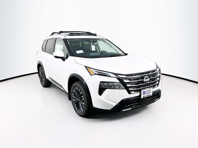 Everest White Pearl 2025 Nissan Rogue Platinum AWD CVT with Xtronic 1.5L DOHC 10 Speakers, 4-Wheel Disc Brakes, ABS brakes, Air Conditioning, Alloy wheels, Auto High-beam Headlights, Auto-dimming Rear-View mirror, Automatic temperature control, Brake assist, Bumpers: body-color, Chrome Rear Bumper Protector, Delay-off headlights, Driver door bin, Driver vanity mirror, Dual front impact airbags, Dual front side impact airbags, Electronic Stability Control, Emergency communication system: NissanConnect Services, First Aid Kit, Four wheel independent suspension, Front anti-roll bar, Front Bucket Seats, Front Center Armrest, Front dual zone A/C, Front reading lights, Fully automatic headlights, Garage door transmitter: myQ Connected Garage, Head-Up Display, Heated door mirrors, Heated front seats, Heated Rear Seats, Heated steering wheel, Illuminated entry, Knee airbag, Low tire pressure warning, Memory seat, Motion-Activated Power Liftgate, Occupant sensing airbag, Outside temperature display, Overhead airbag, Overhead console, Panic alarm, Passenger door bin, Passenger vanity mirror, Platinum Premium Package, Power door mirrors, Power driver seat, Power Liftgate, Power moonroof, Power passenger seat, Power steering, Power windows, Premium Paint, Radio data system, Rear anti-roll bar, Rear Door Sunshades, Rear reading lights, Rear seat center armrest, Rear side impact airbag, Rear window defroster, Rear window wiper, Remote keyless entry, Roof Rail Cross Bars, Security system, Speed control, Speed-sensing steering, Speed-Sensitive Wipers, Split folding rear seat, Spoiler, Steering wheel mounted audio controls, Tachometer, Telescoping steering wheel, Tilt steering wheel, Traction control, Tri-Zone Automatic Temperature Control, Trip computer, Turn signal indicator mirrors, USB Charging Cable Set - Nissan, Variably intermittent wipers.