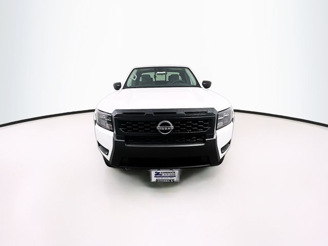 Glacier White 2026 Nissan Frontier S 4WD 9-Speed Automatic with Overdrive 3.8L DI DOHC 24V V6 120V Power Outlet in Bed, 120V Power Outlet in Rear Center Console, S Utility Package, Spray-In Bedliner, 16" Styled Steel Wheels, 3.692 Axle Ratio, 4 Speakers, 4-Wheel Disc Brakes, ABS brakes, Air Conditioning, Anti-whiplash front head restraints, Apple CarPlay/Android Auto, Auto High-beam Headlights, Blind Spot Warning, Brake assist, Bumpers: body-color, Carpeted Floor Mats, Cloth Seat Trim, Delay-off headlights, Driver door bin, Dual front impact airbags, Dual front side impact airbags, Electronic Stability Control, Emergency communication system, Front anti-roll bar, Front Bucket Seats, Front Center Armrest, Front reading lights, Front wheel independent suspension, Fully automatic headlights, Illuminated entry, Knee airbag, Low tire pressure warning, Occupant sensing airbag, Overhead airbag, Overhead console, Panic alarm, Passenger door bin, Power steering, Power windows, Radio data system, Radio: AM/FM/AUX/USB Audio System, Rear side impact airbag, Rear step bumper, Remote keyless entry, Speed control, Speed-sensing steering, Splash Guards, Split folding rear seat, Steering wheel mounted audio controls, Tachometer, Telescoping steering wheel, Tilt steering wheel, Traction control, Trip computer, Variably intermittent wipers, 120V Power Outlet in Bed, 120V Power Outlet in Rear Center Console, S Utility Package, Spray-In Bedliner.