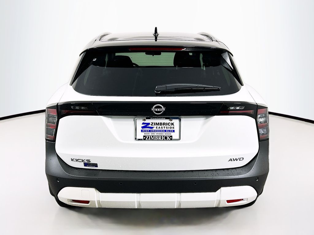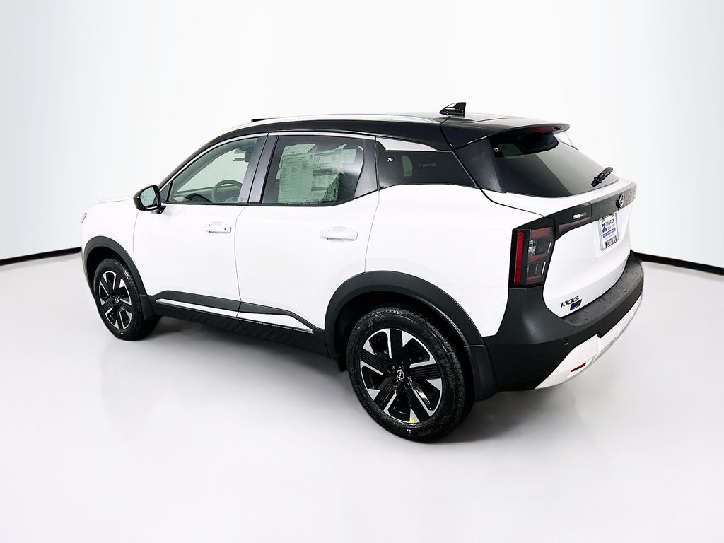 Aspen White Tricoat/Super Black 2026 Nissan Kicks SV AWD CVT with Xtronic 2.0L DOHC Cold Weather Package, Heated Front Seats, Heated Mirrors, Illuminated Driver & Passenger Sun Visors, Panoramic Moonroof, Rear Floor Heater Ducts, Sunglass Holder, SV Premium Package, 17" Alloy Wheels, 2-Tone Premium Paint, 4 Speakers, 4-Wheel Disc Brakes, ABS brakes, Air Conditioning, Alloy wheels, AM/FM radio, Auto High-beam Headlights, Automatic temperature control, Blind Spot Warning, Brake assist, Bumpers: body-color, Carpeted Floor Mats, Cloth Seat Trim, Driver door bin, Driver vanity mirror, Dual front impact airbags, Dual front side impact airbags, Electronic Stability Control, Emergency communication system, Exterior Parking Camera Rear, Four wheel independent suspension, Front anti-roll bar, Front Bucket Seats, Front Center Armrest, Front reading lights, Fully automatic headlights, Illuminated entry, Knee airbag, Low tire pressure warning, NissanConnect featuring Apple CarPlay and Android Auto, Occupant sensing airbag, Outside temperature display, Overhead airbag, Panic alarm, Passenger door bin, Passenger vanity mirror, Power door mirrors, Power steering, Power windows, Radio data system, Radio: AM/FM/SiriusXM Audio System, Rear anti-roll bar, Rear reading lights, Rear side impact airbag, Rear window defroster, Rear window wiper, Remote keyless entry, Security system, Speed control, Speed-sensing steering, Splash Guards, Split folding rear seat, Spoiler, Sport steering wheel, Steering wheel mounted audio controls, Tachometer, Telescoping steering wheel, Tilt steering wheel, Traction control, Trip computer, Variably intermittent wipers, Cold Weather Package, Heated Front Seats, Heated Mirrors, Illuminated Driver & Passenger Sun Visors, Panoramic Moonroof, Rear Floor Heater Ducts, Sunglass Holder, SV Premium Package.