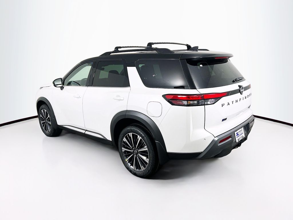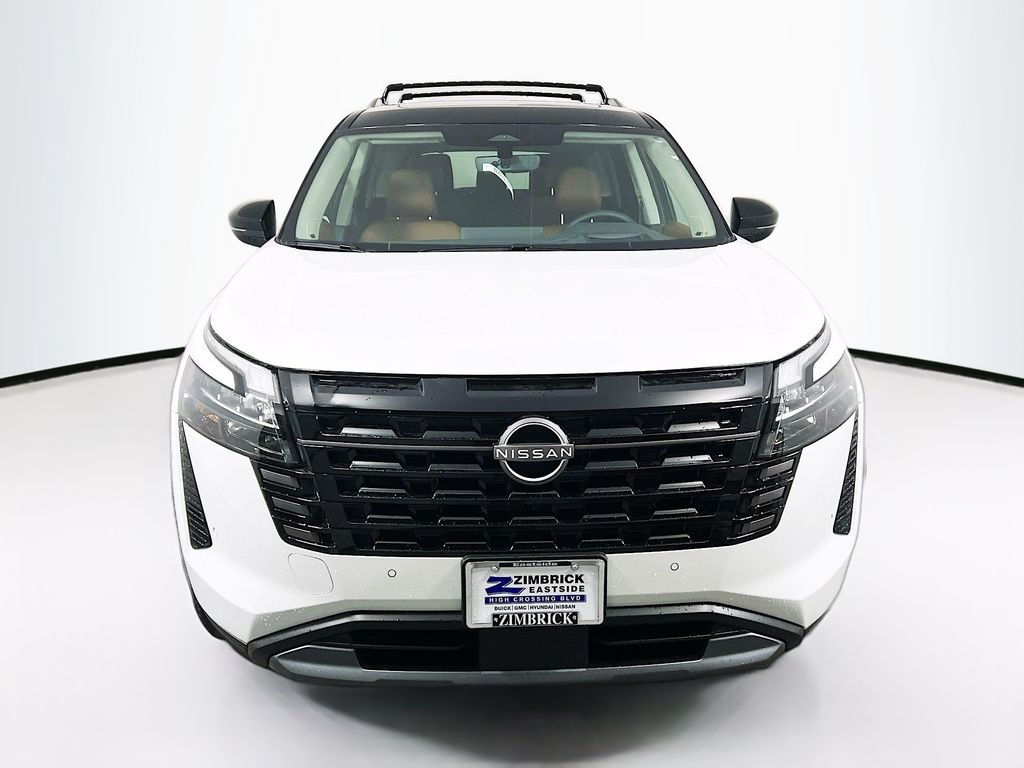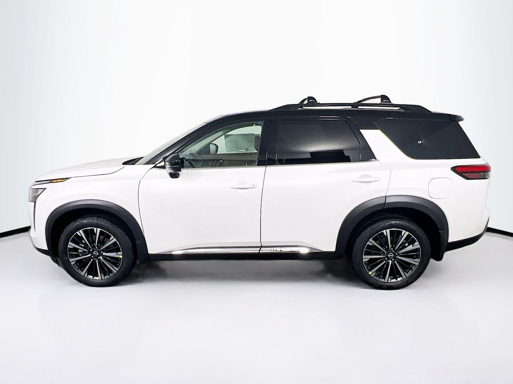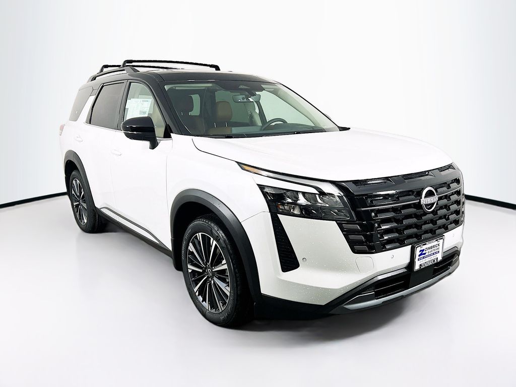 Everest White Pearl/Black 2026 Nissan Pathfinder Platinum 4WD 9-Speed Automatic 3.5L V6 DOHC 2nd-Row Captain Chairs, 2nd-Row Removable Centre Console, Cargo Area Protector, Cargo Net, Cargo Package, First Aid, Navigation system: NissanConnect with Navigation and Services, Platinum Captain Chairs Package, 13 Speakers, 3rd row seats: bench, 4-Piece Black Splash Guards, 4-Wheel Disc Brakes, ABS brakes, Air Conditioning, Alloy wheels, AM/FM radio: SiriusXM w/360L, Auto High-beam Headlights, Auto tilt-away steering wheel, Auto-dimming Rear-View mirror, Automatic temperature control, Bodyside moldings, Bose Premium Audio System, Brake assist, Bumpers: body-color, Captain's Chairs Carpeted Floor Mats, Climate Controlled Front Bucket Seats, Cross Bars, Delay-off headlights, Driver door bin, Driver vanity mirror, Dual front impact airbags, Dual front side impact airbags, Electronic Stability Control, Emergency communication system: NissanConnect Services, Four wheel independent suspension, Front anti-roll bar, Front Bucket Seats, Front Center Armrest, Front dual zone A/C, Front reading lights, Fully automatic headlights, Garage door transmitter: HomeLink, Heads-Up Display, Heated door mirrors, Heated front seats, Heated rear seats, Heated steering wheel, Illuminated entry, Knee airbag, Low tire pressure warning, Memory seat, NissanConnect featuring Apple CarPlay and Android Auto, Occupant sensing airbag, Outside temperature display, Overhead airbag, Overhead console, Panic alarm, Passenger door bin, Passenger vanity mirror, Power door mirrors, Power driver seat, Power Liftgate, Power moonroof, Power passenger seat, Power steering, Power windows, Premium Paint and 2-Tone Roof, Radio data system, Radio: AM/FM Audio System with NissanConnect, Rain sensing wipers, Rear air conditioning, Rear anti-roll bar, Rear reading lights, Rear seat center armrest, Rear side impact airbag, Rear window defroster, Rear window wiper, Reclining 3rd row seat, Remote keyless entry, Security system, Semi-Aniline Leather-Appointed Seating Surfaces, Speed control, Speed-sensing steering, Speed-Sensitive Wipers, Split folding rear seat, Spoiler, Steering wheel memory, Steering wheel mounted audio controls, Tachometer, Telescoping steering wheel, Tilt steering wheel, Traction control, Trip computer, Turn signal indicator mirrors, Variably intermittent wipers, Ventilated front seats, Wheels: 20" Machined Alloy, 2nd-Row Captain Chairs, 2nd-Row Removable Centre Console, Cargo Area Protector, Cargo Net, Cargo Package, First Aid, Navigation system: NissanConnect with Navigation and Services, Platinum Captain Chairs Package.