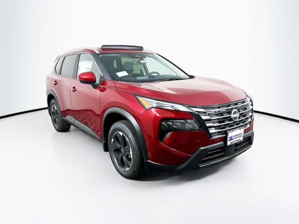 Scarlet Ember Tintcoat 2026 Nissan Rogue SV AWD CVT with Xtronic 1.5L DOHC Cold Weather Package, Heated Front Seats, Heated Steering Wheel, Leatherette Door Trim Inserts w/Stitch, Panoramic Moonroof, Prima-Tex Leatherette Seat Trim, Rear Door Sunshades, Rear Personal Lights, Silver Painted Roof Rails, SV Premium Package, 4-Wheel Disc Brakes, 6 Speakers, ABS brakes, Air Conditioning, Alloy wheels, Apple CarPlay/Android Auto, Auto High-beam Headlights, Automatic temperature control, Black Splash Guards (Set of 4) (B92), Brake assist, Bumpers: body-color, Cloth Seat Trim w/Patterned Inserts, Delay-off headlights, Driver door bin, Driver vanity mirror, Dual front impact airbags, Dual front side impact airbags, Electronic Stability Control, Emergency communication system: NissanConnect Services, First Aid Kit, Floor Mats w/1-Piece Cargo Area Protector, Four wheel independent suspension, Frameless Rearview Mirror w/Universal Remote, Front anti-roll bar, Front Bucket Seats, Front Center Armrest, Front dual zone A/C, Front reading lights, Fully automatic headlights, Heated door mirrors, Illuminated entry, Knee airbag, Low tire pressure warning, Occupant sensing airbag, Outside temperature display, Overhead airbag, Overhead console, Panic alarm, Passenger door bin, Passenger vanity mirror, Power door mirrors, Power driver seat, Power Liftgate, Power steering, Power windows, Premium Paint, Radio data system, Radio: AM/FM NissanConnect, Rear anti-roll bar, Rear seat center armrest, Rear side impact airbag, Rear window defroster, Rear window wiper, Remote keyless entry, Speed control, Speed-sensing steering, Speed-Sensitive Wipers, Split folding rear seat, Spoiler, Steering wheel mounted audio controls, Tachometer, Telescoping steering wheel, Tilt steering wheel, Traction control, Trip computer, Variably intermittent wipers, Wheels: 18" Dark Painted Machine Finished Alloy, Cold Weather Package, Heated Front Seats, Heated Steering Wheel, Leatherette Door Trim Inserts w/Stitch, Panoramic Moonroof, Prima-Tex Leatherette Seat Trim, Rear Door Sunshades, Rear Personal Lights, Silver Painted Roof Rails, SV Premium Package.
