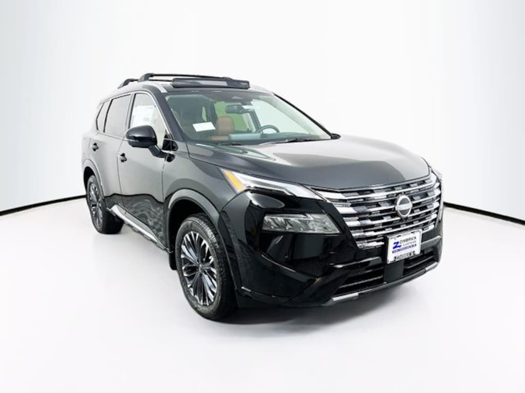 Super Black 2026 Nissan Rogue Platinum AWD CVT with Xtronic 1.5L DOHC Head-Up Display, Heated Rear Seats, Motion-Activated Power Liftgate, Navigation system: Google Maps, Platinum Premium Package, Tri-Zone Automatic Temperature Control, 10 Speakers, 4-Wheel Disc Brakes, ABS brakes, Air Conditioning, Alloy wheels, AM/FM radio: SiriusXM w/360L, Auto High-beam Headlights, Auto-dimming Rear-View mirror, Automatic temperature control, Black Splash Guards (Set of 4), Bose Premium Audio System, Brake assist, Bumpers: body-color, Chrome Rear Bumper Protector, Delay-off headlights, Driver door bin, Driver vanity mirror, Dual front impact airbags, Dual front side impact airbags, Electronic Stability Control, Emergency communication system: NissanConnect Services, First Aid Kit, Floor Mats w/2-Piece Cargo Area Protector, Four wheel independent suspension, Front anti-roll bar, Front Bucket Seats, Front Center Armrest, Front dual zone A/C, Front reading lights, Fully automatic headlights, Garage door transmitter: myQ Connected Garage, Heads-Up Display, Heated door mirrors, Heated Front Bucket Seats, Heated front seats, Heated steering wheel, Illuminated entry, Illuminated Kick Plates, Knee airbag, Low tire pressure warning, Memory seat, Occupant sensing airbag, Outside temperature display, Overhead airbag, Overhead console, Panic alarm, Passenger door bin, Passenger vanity mirror, Power door mirrors, Power driver seat, Power Liftgate, Power moonroof, Power passenger seat, Power steering, Power windows, Quilted Semi-Aniline Leather-Appointed Seat Trim, Radio data system, Radio: AM/FM NissanConnect w/Navigation, Rear anti-roll bar, Rear reading lights, Rear seat center armrest, Rear side impact airbag, Rear window defroster, Rear window wiper, Remote keyless entry, Roof Rail Cross Bars, Security system, Speed control, Speed-sensing steering, Speed-Sensitive Wipers, Split folding rear seat, Spoiler, Steering wheel mounted audio controls, Tachometer, Telescoping steering wheel, Tilt steering wheel, Traction control, Trip computer, Turn signal indicator mirrors, Variably intermittent wipers, Wheels: 19" Unique Dark Painted Aluminum Alloy, Wireless Apple CarPlay/Wireless Android Auto, Head-Up Display, Heated Rear Seats, Motion-Activated Power Liftgate, Navigation system: Google Maps, Platinum Premium Package, Tri-Zone Automatic Temperature Control.