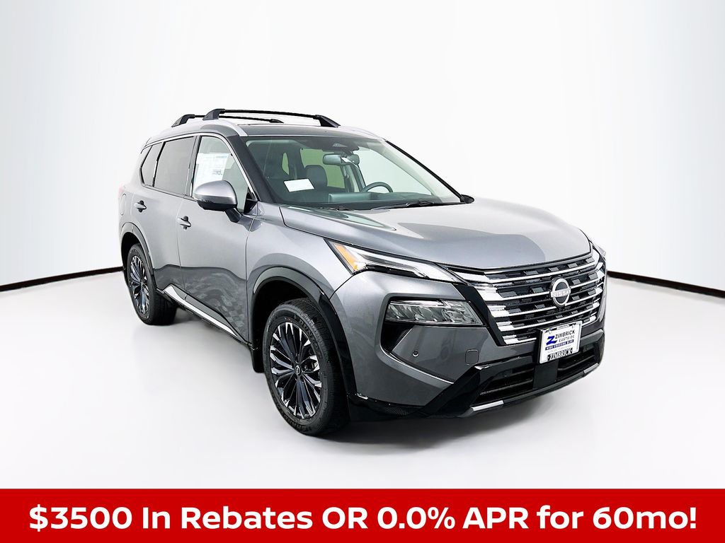 Gun Metallic 2026 Nissan Rogue Platinum AWD CVT with Xtronic 1.5L DOHC Head-Up Display, Heated Rear Seats, Motion-Activated Power Liftgate, Platinum Premium Package, Tri-Zone Automatic Temperature Control, 10 Speakers, 4-Wheel Disc Brakes, ABS brakes, Air Conditioning, Alloy wheels, AM/FM radio: SiriusXM w/360L, Auto High-beam Headlights, Auto-dimming Rear-View mirror, Automatic temperature control, Bose Premium Audio System, Brake assist, Bumpers: body-color, Chrome Rear Bumper Protector, Delay-off headlights, Driver door bin, Driver vanity mirror, Dual front impact airbags, Dual front side impact airbags, Electronic Stability Control, Emergency communication system: NissanConnect Services, First Aid Kit, Four wheel independent suspension, Front anti-roll bar, Front Bucket Seats, Front Center Armrest, Front dual zone A/C, Front reading lights, Fully automatic headlights, Garage door transmitter: myQ Connected Garage, Heads-Up Display, Heated door mirrors, Heated Front Bucket Seats, Heated front seats, Heated steering wheel, Illuminated entry, Illuminated Kick Plates, Knee airbag, Low tire pressure warning, Memory seat, Navigation system: Google Maps, Occupant sensing airbag, Outside temperature display, Overhead airbag, Overhead console, Panic alarm, Passenger door bin, Passenger vanity mirror, Power door mirrors, Power driver seat, Power Liftgate, Power moonroof, Power passenger seat, Power steering, Power windows, Quilted Semi-Aniline Leather-Appointed Seat Trim, Radio data system, Rear anti-roll bar, Rear reading lights, Rear seat center armrest, Rear side impact airbag, Rear window defroster, Rear window wiper, Remote keyless entry, Roof Rail Cross Bars, Security system, Speed control, Speed-sensing steering, Speed-Sensitive Wipers, Split folding rear seat, Spoiler, Steering wheel mounted audio controls, Tachometer, Telescoping steering wheel, Tilt steering wheel, Traction control, Trip computer, Turn signal indicator mirrors, Variably intermittent wipers, Wheels: 19" Unique Dark Painted Aluminum Alloy, Wireless Apple CarPlay/Wireless Android Auto, Head-Up Display, Heated Rear Seats, Motion-Activated Power Liftgate, Platinum Premium Package, Tri-Zone Automatic Temperature Control.