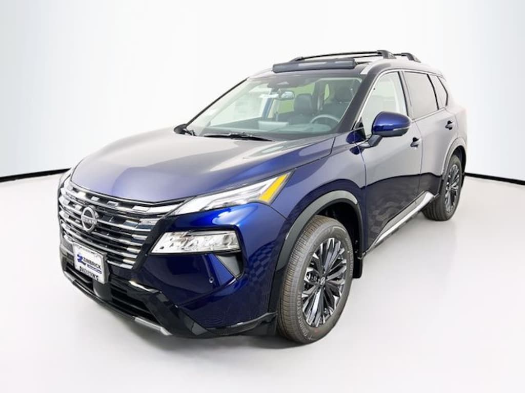 Deep Ocean Blue Pearl 2026 Nissan Rogue Platinum AWD CVT with Xtronic 1.5L DOHC Head-Up Display, Heated Rear Seats, Motion-Activated Power Liftgate, Navigation system: Google Maps, Platinum Premium Package, Tri-Zone Automatic Temperature Control, 10 Speakers, 4-Wheel Disc Brakes, ABS brakes, Air Conditioning, Alloy wheels, AM/FM radio: SiriusXM w/360L, Auto High-beam Headlights, Auto-dimming Rear-View mirror, Automatic temperature control, Black Splash Guards (Set of 4), Bose Premium Audio System, Brake assist, Bumpers: body-color, Chrome Rear Bumper Protector, Delay-off headlights, Driver door bin, Driver vanity mirror, Dual front impact airbags, Dual front side impact airbags, Electronic Stability Control, Emergency communication system: NissanConnect Services, First Aid Kit, Floor Mats w/2-Piece Cargo Area Protector, Four wheel independent suspension, Front anti-roll bar, Front Bucket Seats, Front Center Armrest, Front dual zone A/C, Front reading lights, Fully automatic headlights, Garage door transmitter: myQ Connected Garage, Heads-Up Display, Heated door mirrors, Heated Front Bucket Seats, Heated front seats, Heated steering wheel, Illuminated entry, Knee airbag, Low tire pressure warning, Memory seat, Occupant sensing airbag, Outside temperature display, Overhead airbag, Overhead console, Panic alarm, Passenger door bin, Passenger vanity mirror, Power door mirrors, Power driver seat, Power Liftgate, Power moonroof, Power passenger seat, Power steering, Power windows, Quilted Semi-Aniline Leather-Appointed Seat Trim, Radio data system, Radio: AM/FM NissanConnect w/Navigation, Rear anti-roll bar, Rear reading lights, Rear seat center armrest, Rear side impact airbag, Rear window defroster, Rear window wiper, Remote keyless entry, Roof Rail Cross Bars, Security system, Speed control, Speed-sensing steering, Speed-Sensitive Wipers, Split folding rear seat, Spoiler, Steering wheel mounted audio controls, Tachometer, Telescoping steering wheel, Tilt steering wheel, Traction control, Trip computer, Turn signal indicator mirrors, Variably intermittent wipers, Wheels: 19" Unique Dark Painted Aluminum Alloy, Wireless Apple CarPlay/Wireless Android Auto, Head-Up Display, Heated Rear Seats, Motion-Activated Power Liftgate, Navigation system: Google Maps, Platinum Premium Package, Tri-Zone Automatic Temperature Control.