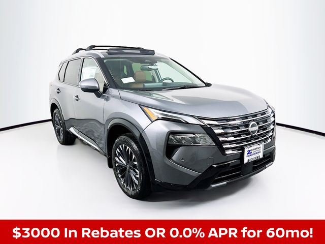 Gun Metallic 2026 Nissan Rogue Platinum AWD CVT with Xtronic 1.5L DOHC Head-Up Display, Heated Rear Seats, Motion-Activated Power Liftgate, Navigation system: Google Maps, Platinum Premium Package, Tri-Zone Automatic Temperature Control, 10 Speakers, 4-Wheel Disc Brakes, ABS brakes, Air Conditioning, Alloy wheels, AM/FM radio: SiriusXM w/360L, Auto High-beam Headlights, Auto-dimming Rear-View mirror, Automatic temperature control, Bose Premium Audio System, Brake assist, Bumpers: body-color, Chrome Rear Bumper Protector, Delay-off headlights, Driver door bin, Driver vanity mirror, Dual front impact airbags, Dual front side impact airbags, Electronic Stability Control, Emergency communication system: NissanConnect Services, First Aid Kit, Four wheel independent suspension, Front anti-roll bar, Front Bucket Seats, Front Center Armrest, Front dual zone A/C, Front reading lights, Fully automatic headlights, Garage door transmitter: myQ Connected Garage, Heads-Up Display, Heated door mirrors, Heated Front Bucket Seats, Heated front seats, Heated steering wheel, Illuminated entry, Knee airbag, Low tire pressure warning, Memory seat, Occupant sensing airbag, Outside temperature display, Overhead airbag, Overhead console, Panic alarm, Passenger door bin, Passenger vanity mirror, Power door mirrors, Power driver seat, Power Liftgate, Power moonroof, Power passenger seat, Power steering, Power windows, Quilted Semi-Aniline Leather-Appointed Seat Trim, Radio data system, Rear anti-roll bar, Rear reading lights, Rear seat center armrest, Rear side impact airbag, Rear window defroster, Rear window wiper, Remote keyless entry, Roof Rail Cross Bars, Security system, Speed control, Speed-sensing steering, Speed-Sensitive Wipers, Split folding rear seat, Spoiler, Steering wheel mounted audio controls, Tachometer, Telescoping steering wheel, Tilt steering wheel, Traction control, Trip computer, Turn signal indicator mirrors, Variably intermittent wipers, Wheels: 19" Unique Dark Painted Aluminum Alloy, Wireless Apple CarPlay/Wireless Android Auto, Head-Up Display, Heated Rear Seats, Motion-Activated Power Liftgate, Navigation system: Google Maps, Platinum Premium Package, Tri-Zone Automatic Temperature Control.